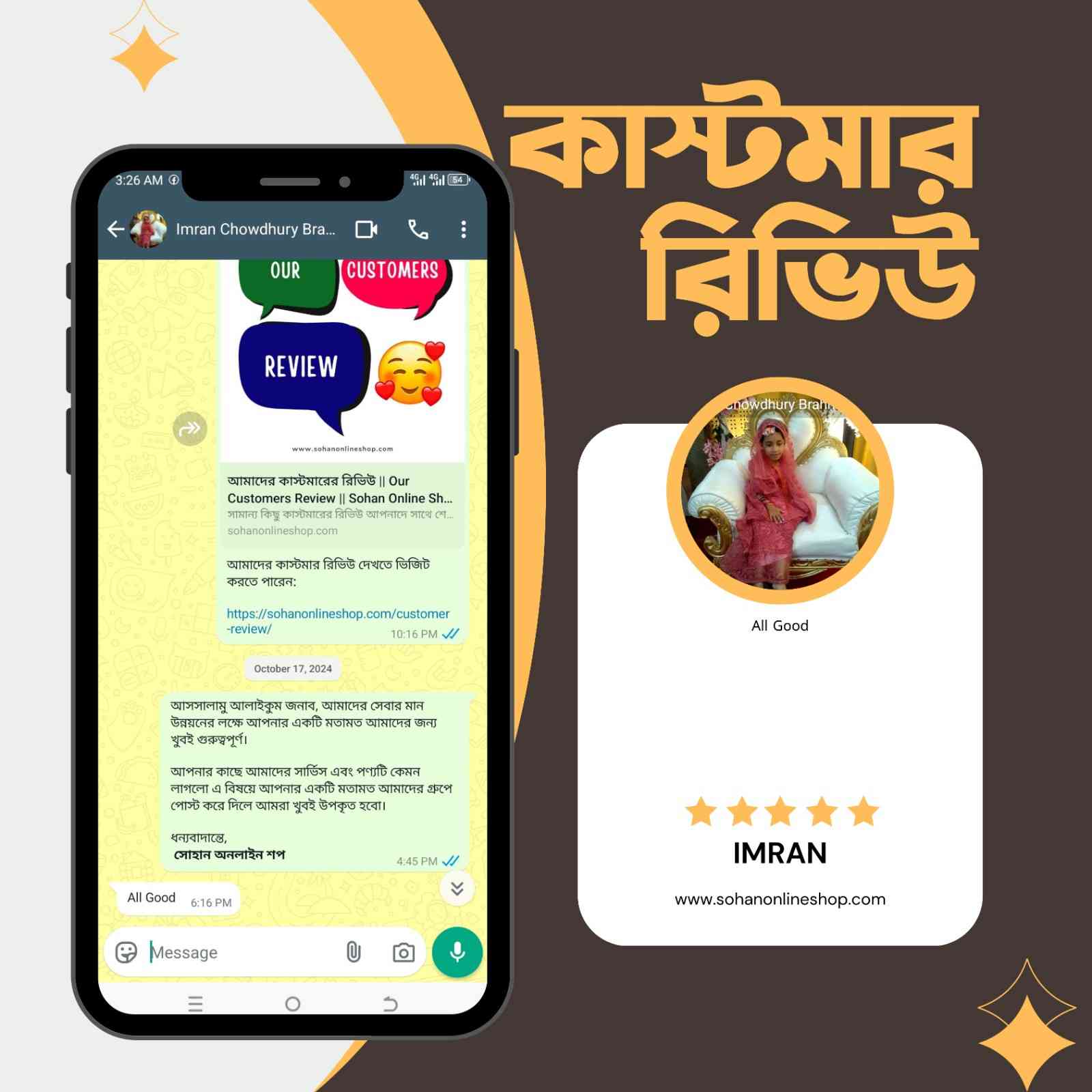 - অথেন্টিক এবং কোয়ালিটি মেইনটেইন করে যারা পণ্য কেনাকাটা করেন তাদের জন্য সোহান অনলাইন সব হতে পারে একটি বিশ্বস্ত অনলাইন শপ।