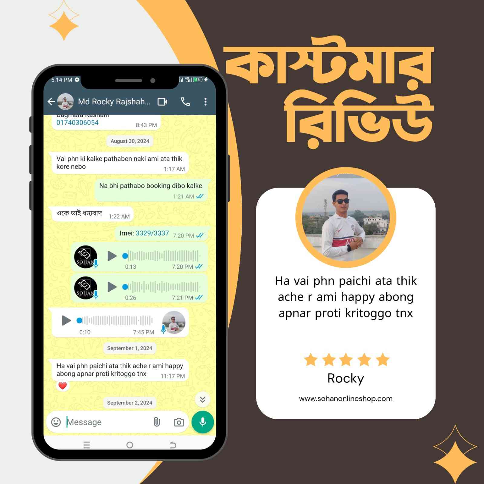 ফোনের কোয়ালিটি খুব ভালো পাইছি যেমন বলছেন তেমনি।সবকিছু মিলিয়ে খুব ভালো আশা করি ব্যবহার করে ভালো লাগবে।আর সবাই নিতে পারে ফোন খুব ভালো।