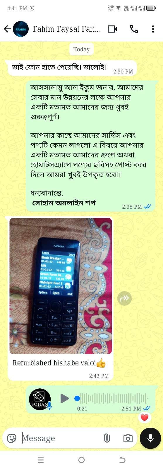 ভাই ফোন হাতে পেয়েছি। ভালোই। Refurbished hishabe valoi👍