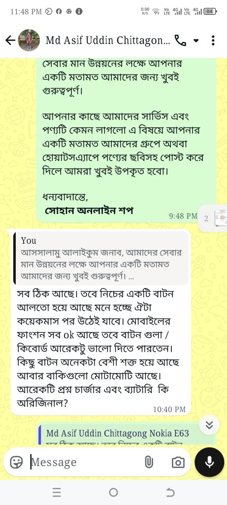 ধন্যবাদ সোহান অনলাইন শপকে, আবার পুরোনো দিনের স্মৃতিকে মনে করিয়ে দেবার জন্য। অনলাইনে অনেকগুলো পেজ আর ওয়েবসাইট চেক করে দেখার পরে বিশ্বাস করে অর্ডার করতে পারছিলাম না। এর পরেই আমি সোহান অনলাইন শপ এর খোঁজ পাই এবং তাদের থেকে অর্ডার করি। উনাদের সার্ভিস এবং মোবাইল দুটোতেই আমি অত্যন্ত সন্তুষ্ট। কাস্টমার দের সাথে ডিল করার ব্যাপারটাও উনাদের অত্যন্ত ভালো। I would definitely recommend this shop. Thanks for taking us to the nostalgic past.
